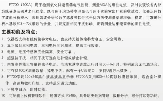 FT700(700A)氧化鋅避雷器帶電測試儀